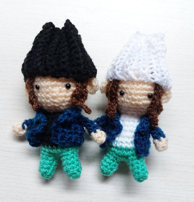 G20でVALさんが着ていた衣装をイメージしたあみぐるみです。 大きさは、持ち歩きにもちょうどいい10㎝くらい。 バッグに入れて、いつでも一緒におでかけできます。 初日の衣装が、黒のタンクトップ&黒の帽子。 2日目は、白のタンクトップ&白の帽子となっています。 ブルーのシャツと緑のジーンズは両日とも同じです。 ご入金いただいてからの製作になります。 10日前後でお送りする予定ですが、それより遅くなる場合は 改めてご連絡します。