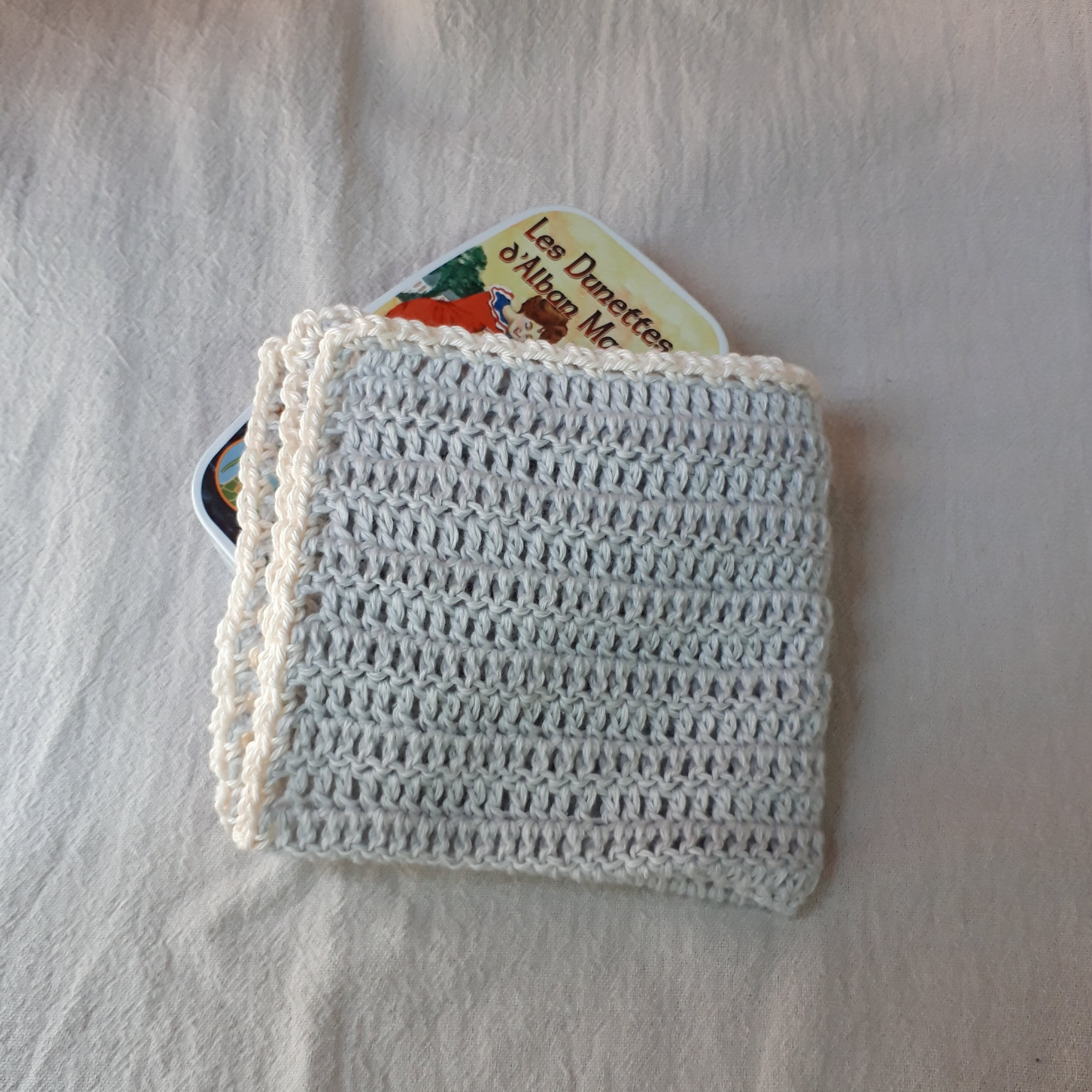 コットン糸で編んだ、肌触りの良いハンカチです。